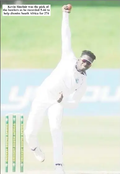 (CMC) – Off-spin bowling all-rounder Kevin Sinclair further enhanced his reputation with a destructive spell that defied half-centuries from Khayelihle Zondo and Neil Brand and enabled West Indies A to gain an edge against hosts South Africa A in the deciding third “Test” yesterday.