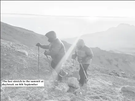 Day six into day seven the group that made it to the summit covered some 18 kilometres going upward and downward. “We were very sore all over.”